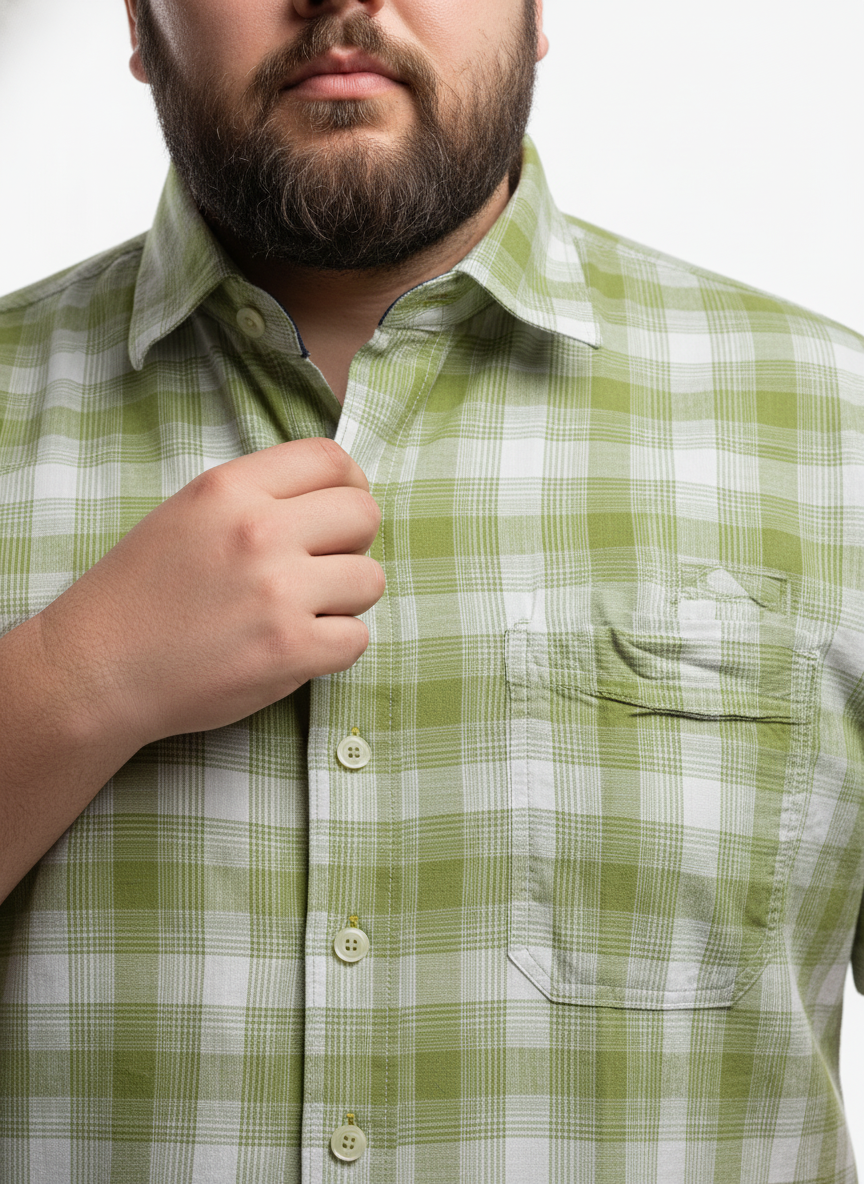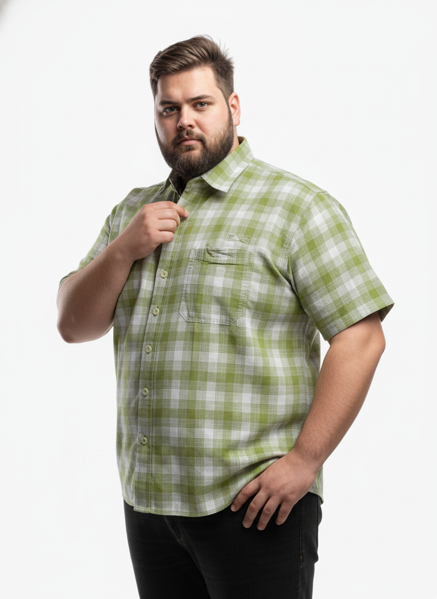 This men’s plus size cotton-blend check shirt is crafted for those who value comfort without compromising on style. The soft, breathable fabric ensures all-day ease, making it perfect for warm weather or layered casual looks. Its checkered design adds a timeless touch, giving you a sharp and polished appearance for any relaxed outing. Designed with a roomy, relaxed fit, this shirt provides effortless movement and a flattering silhouette for plus-size men. The button-down front, short sleeves, and neatly tailored collar enhance its structured yet comfortable feel. Whether you’re heading out for a casual meet-up or a weekend getaway, this shirt keeps you looking confident and put-together.