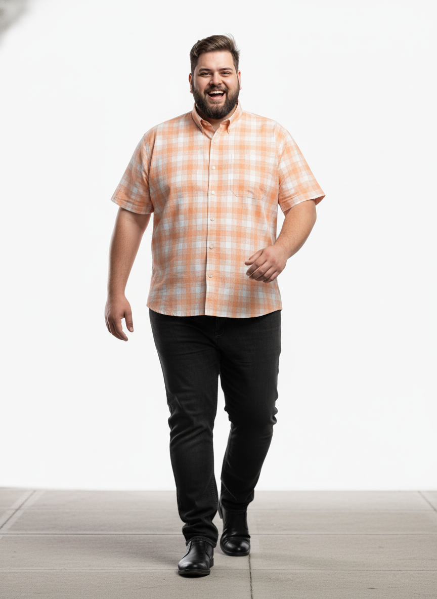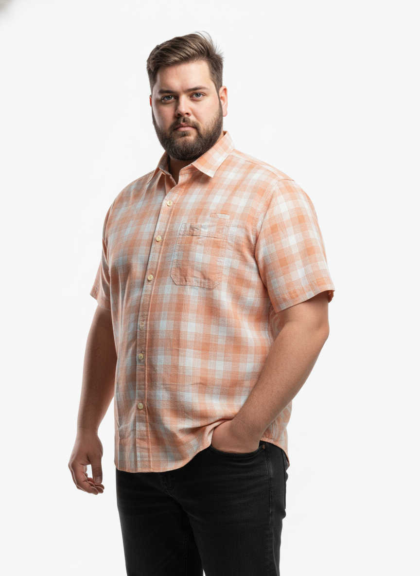 This men’s plus size cotton-blend check shirt is crafted for those who value comfort without compromising on style. The soft, breathable fabric ensures all-day ease, making it perfect for warm weather or layered casual looks. Its checkered design adds a timeless touch, giving you a sharp and polished appearance for any relaxed outing. Designed with a roomy, relaxed fit, this shirt provides effortless movement and a flattering silhouette for plus-size men. The button-down front, short sleeves, and neatly tailored collar enhance its structured yet comfortable feel. Whether you’re heading out for a casual meet-up or a weekend getaway, this shirt keeps you looking confident and put-together.