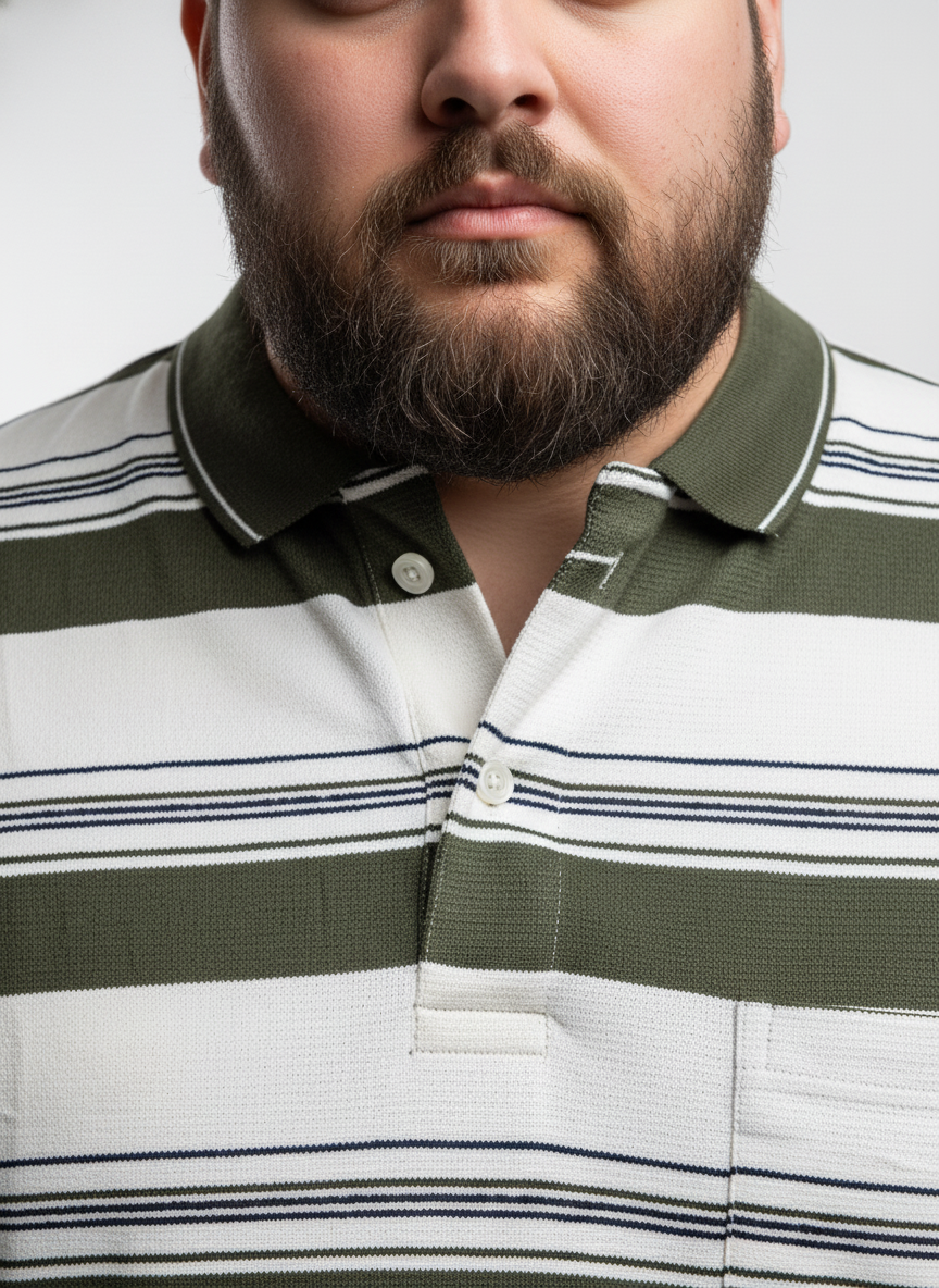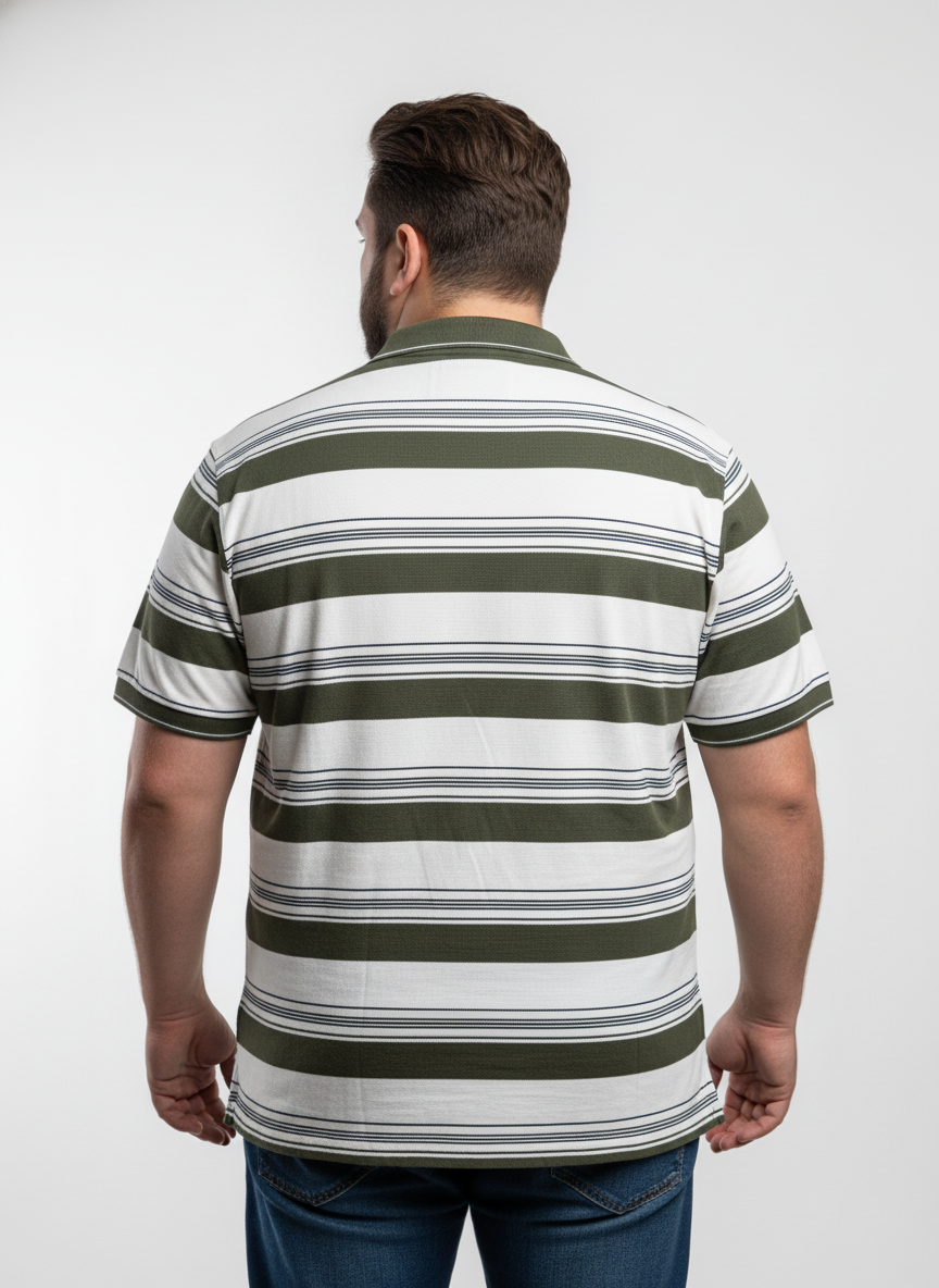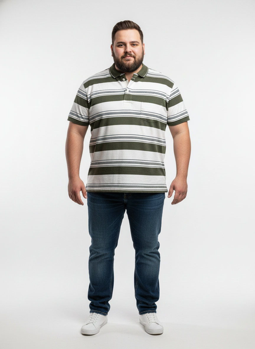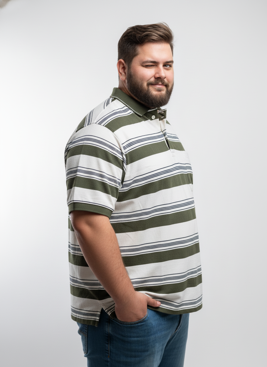 This men’s plus size striped polo t-shirt brings together timeless style and superior comfort for everyday wear. Designed with classic horizontal stripes and a smart collared neckline, it offers a refined casual look that’s easy to pair with jeans or chinos. The short sleeves and relaxed fit ensure unrestricted movement and a flattering silhouette, keeping you comfortable and confident all day long.Crafted from premium soft cotton fabric, this polo t-shirt feels gentle on the skin and allows excellent breathability, making it ideal for both indoor and outdoor wear. Whether you’re heading out for a casual outing, a laid-back office day, or a weekend get-together, this versatile piece effortlessly combines comfort and classic fashion for the modern plus-size man.