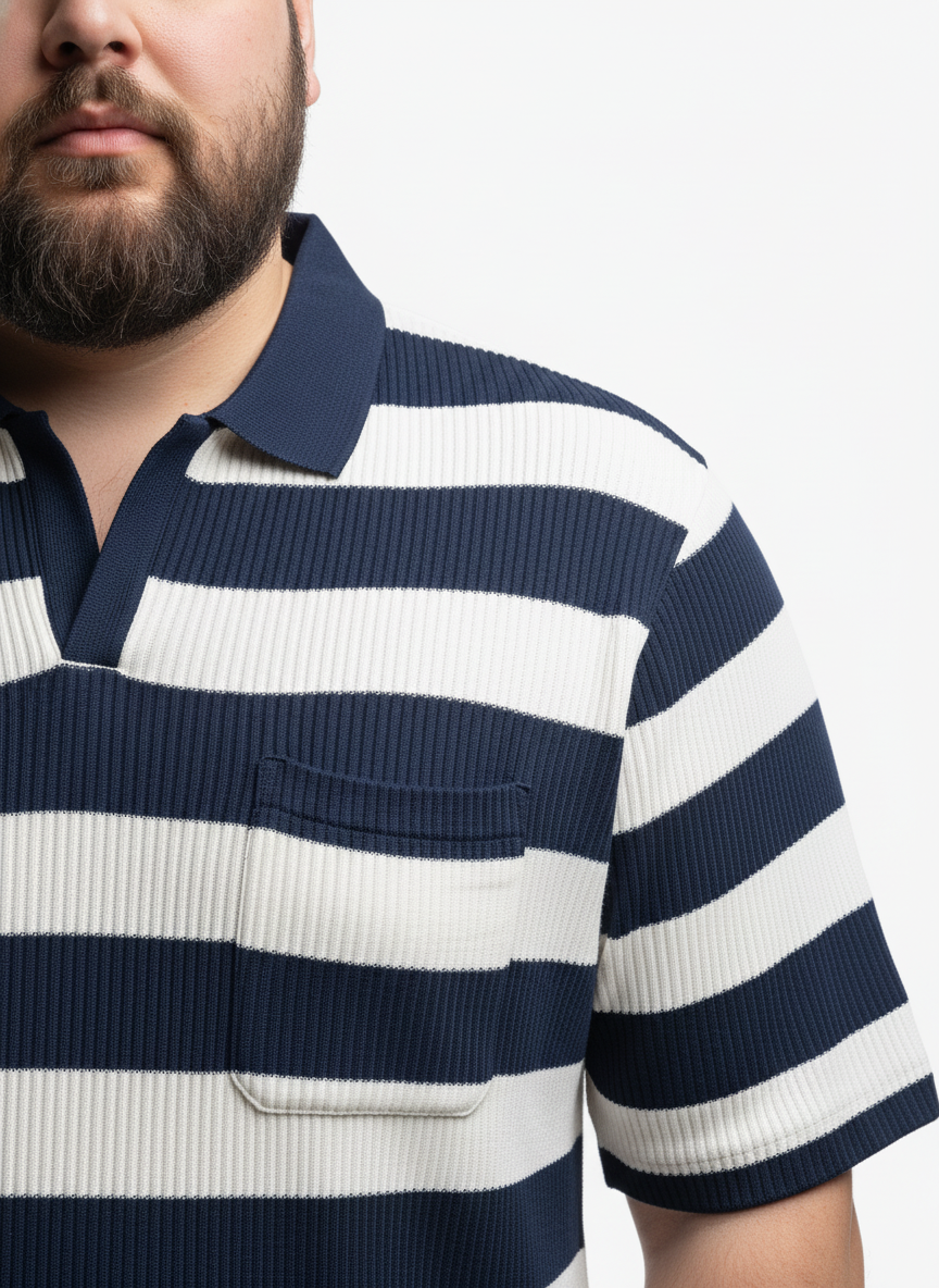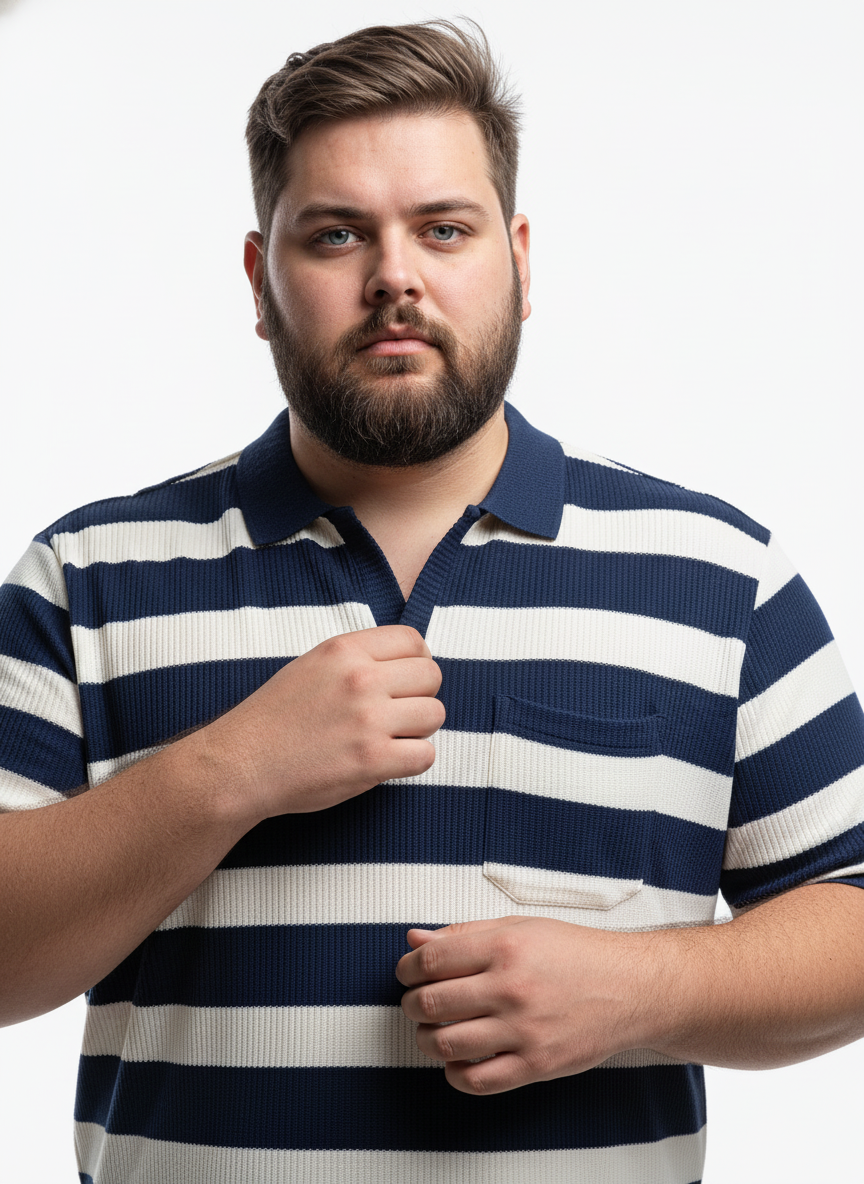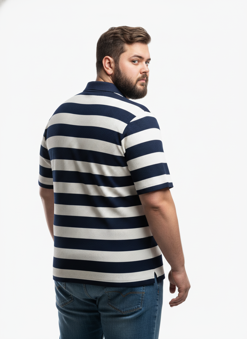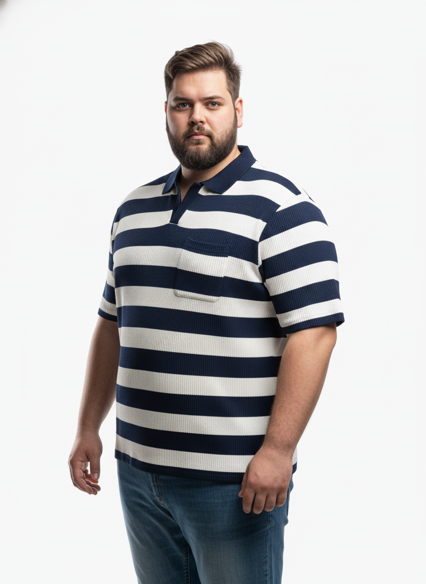 This men’s plus size striped polo t-shirt offers a perfect blend of comfort and style for everyday wear. Designed with a relaxed fit, it provides ample room for movement while maintaining a flattering silhouette. The soft, breathable fabric ensures all-day comfort, making it ideal for both casual outings and relaxed weekends.