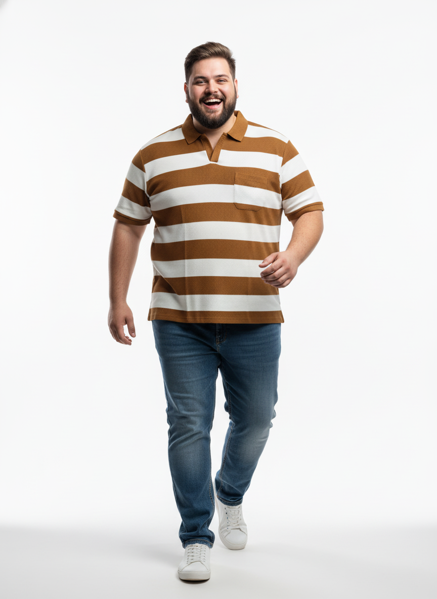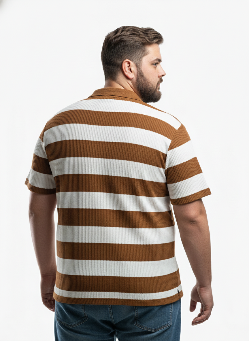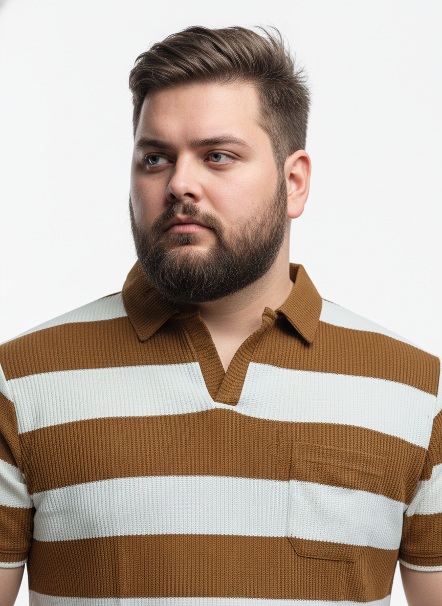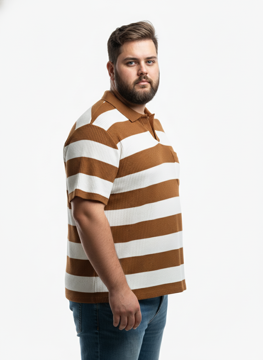 This men’s plus size striped polo t-shirt offers a perfect blend of comfort and style for everyday wear. Designed with a relaxed fit, it provides ample room for movement while maintaining a flattering silhouette. The soft, breathable fabric ensures all-day comfort, making it ideal for both casual outings and relaxed weekends.