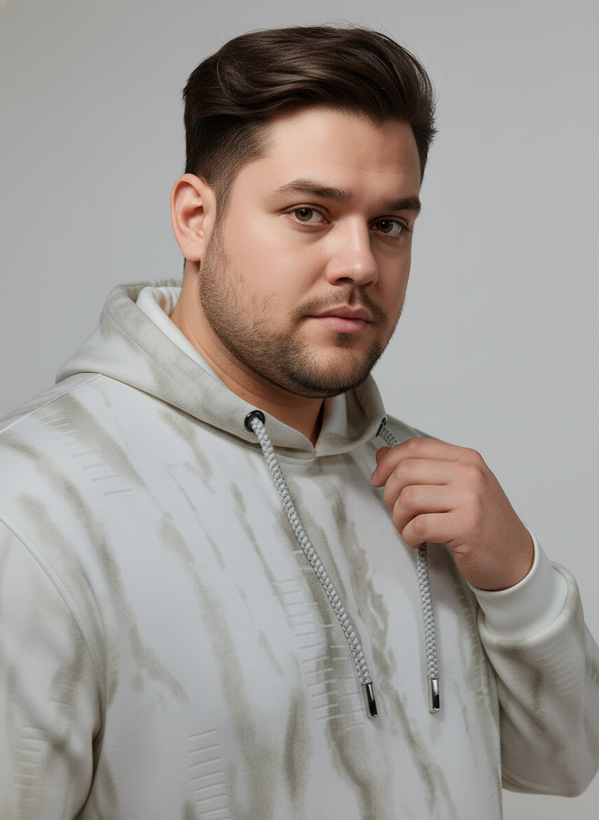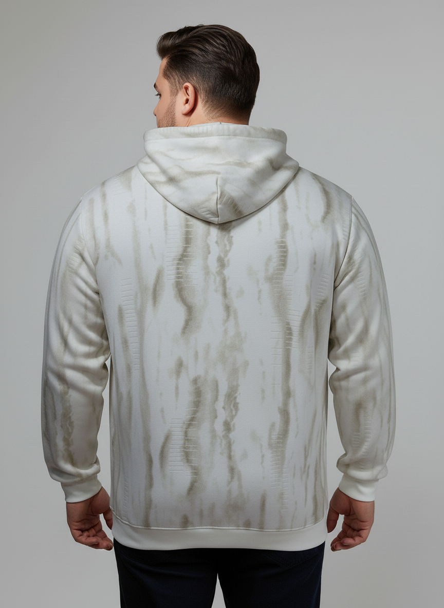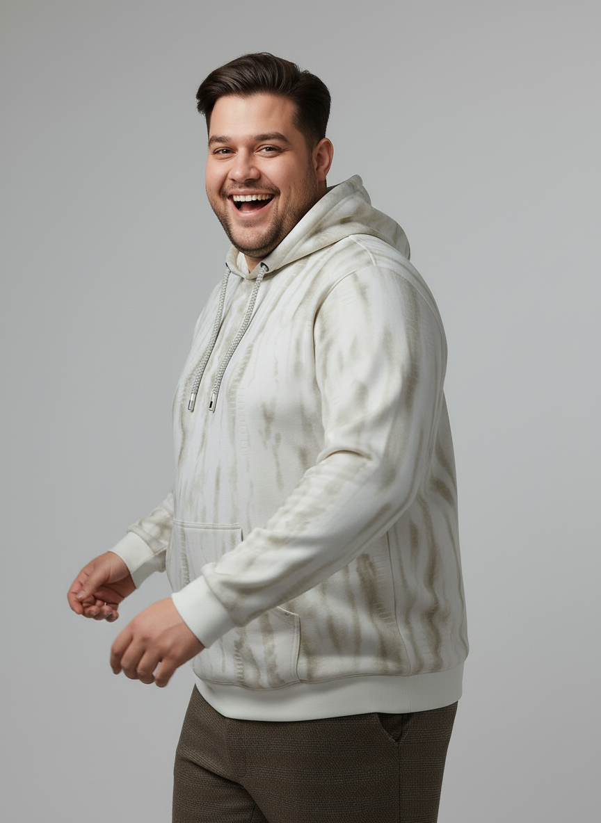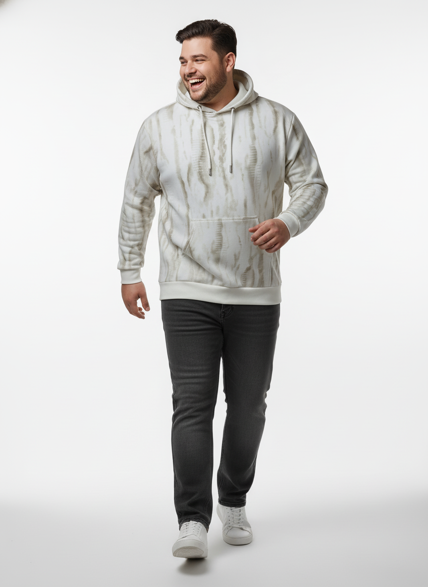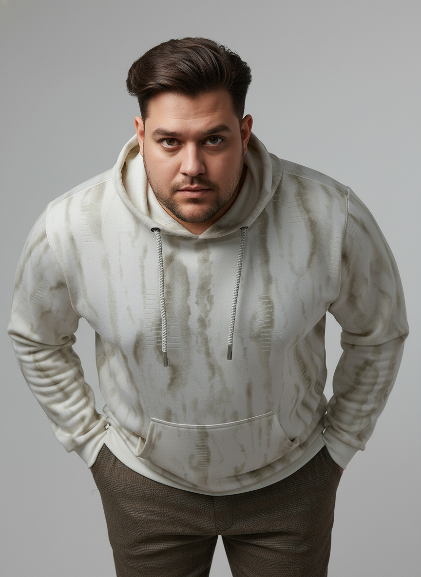 Upgrade your casual wardrobe with this stylish plus size hoodie designed for all-day comfort and effortless style. Crafted from a soft cotton blend fabric, it offers a smooth, breathable feel that keeps you cozy in every season. The subtle tie-dye effect adds a modern, relaxed vibe, making it perfect for pairing with jeans, joggers, or casual trousers.Featuring a drawstring hood, full sleeves, and a spacious kangaroo pocket, this pullover hoodie combines functionality with laid-back fashion. Its relaxed fit ensures freedom of movement and a flattering silhouette for plus size men who value both comfort and confidence in their everyday look.
