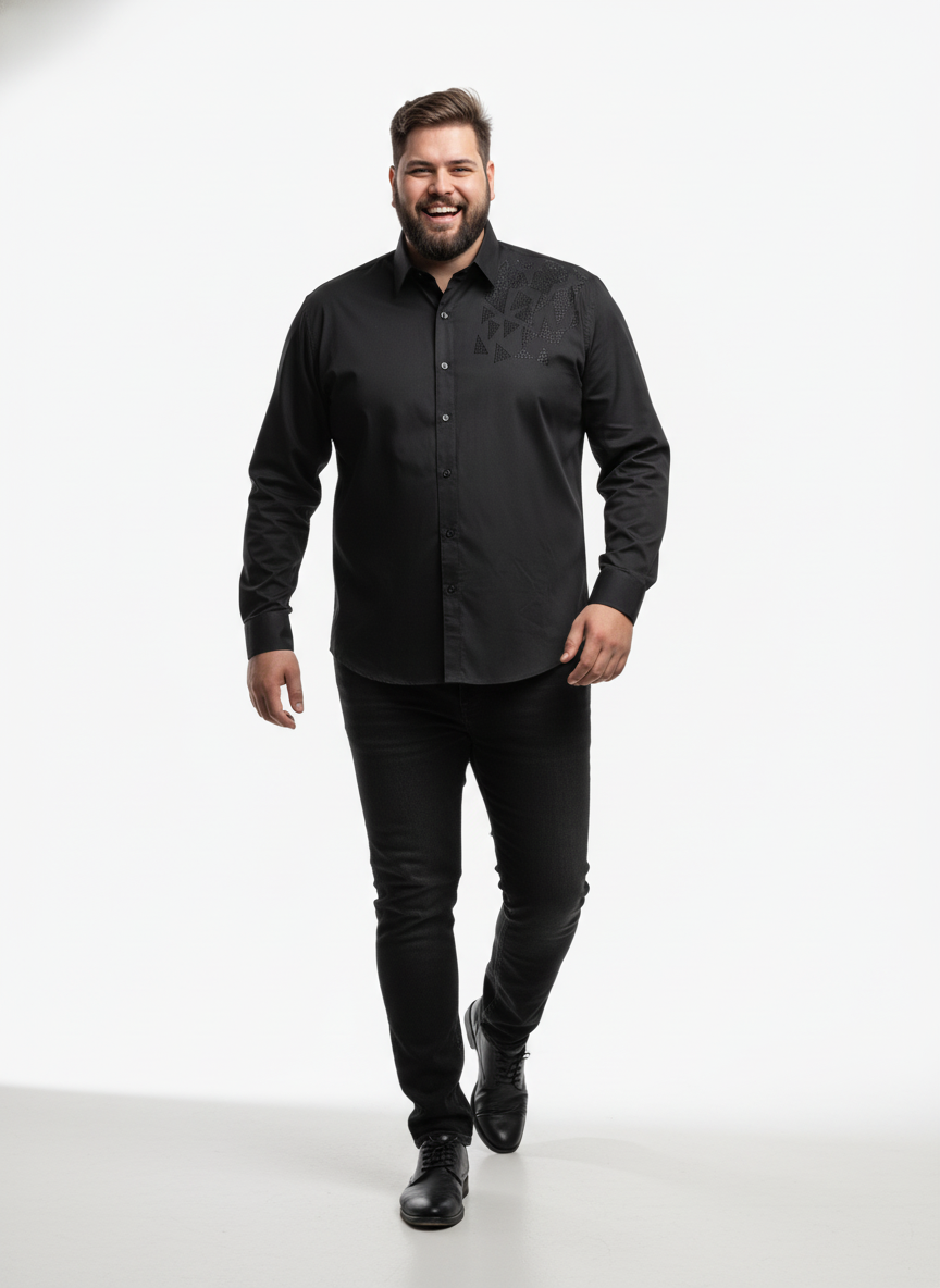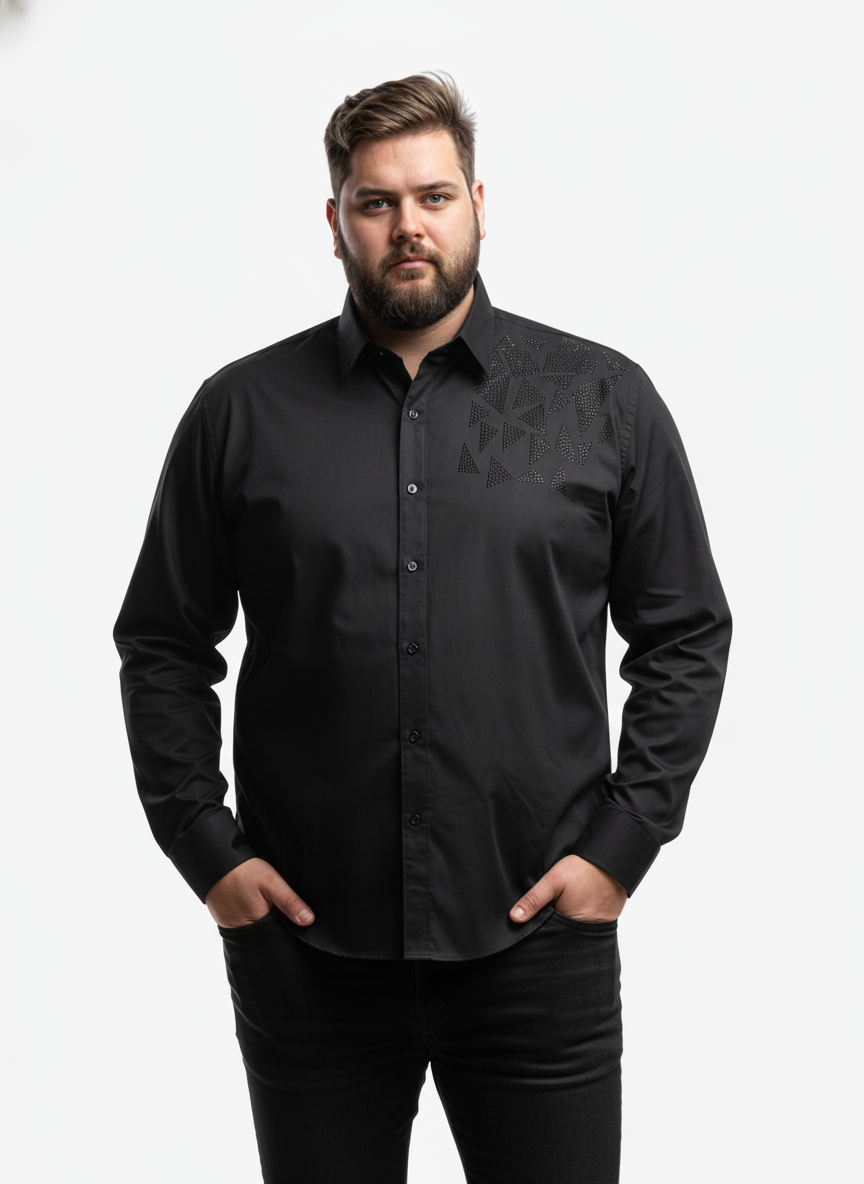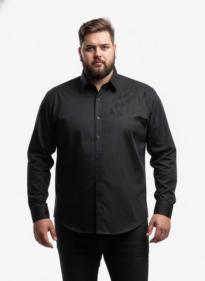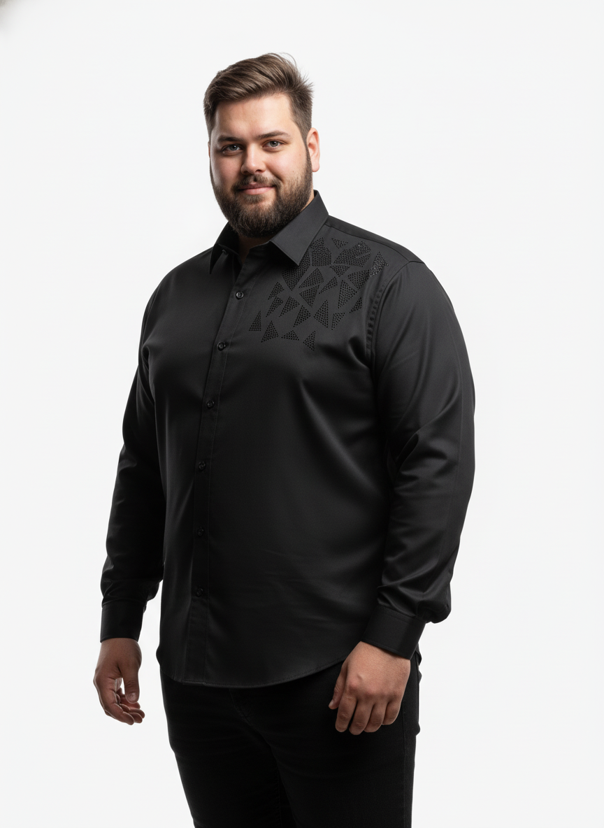 Elevate your party style with this premium plus-size full sleeve shirt, crafted to deliver a sharp, modern look with effortless comfort. The clean, structured silhouette is enhanced with a smooth fabric that feels soft on the skin while maintaining a refined finish, perfect for evening events, celebrations, or club nights. Designed to flatter broader frames, it offers a relaxed yet tailored fit that keeps you looking confident and composed.Pair it effortlessly with black trousers, denim, or your favourite partywear bottoms to create a sleek, attention-grabbing outfit. Whether you’re heading to festive gatherings, cocktail nights, or special occasions, this shirt ensures you remain comfortable while stealing the spotlight. Durable stitching, premium fabric quality, and trend-forward detailing make it a must-have addition to your plus-size partywear collection.