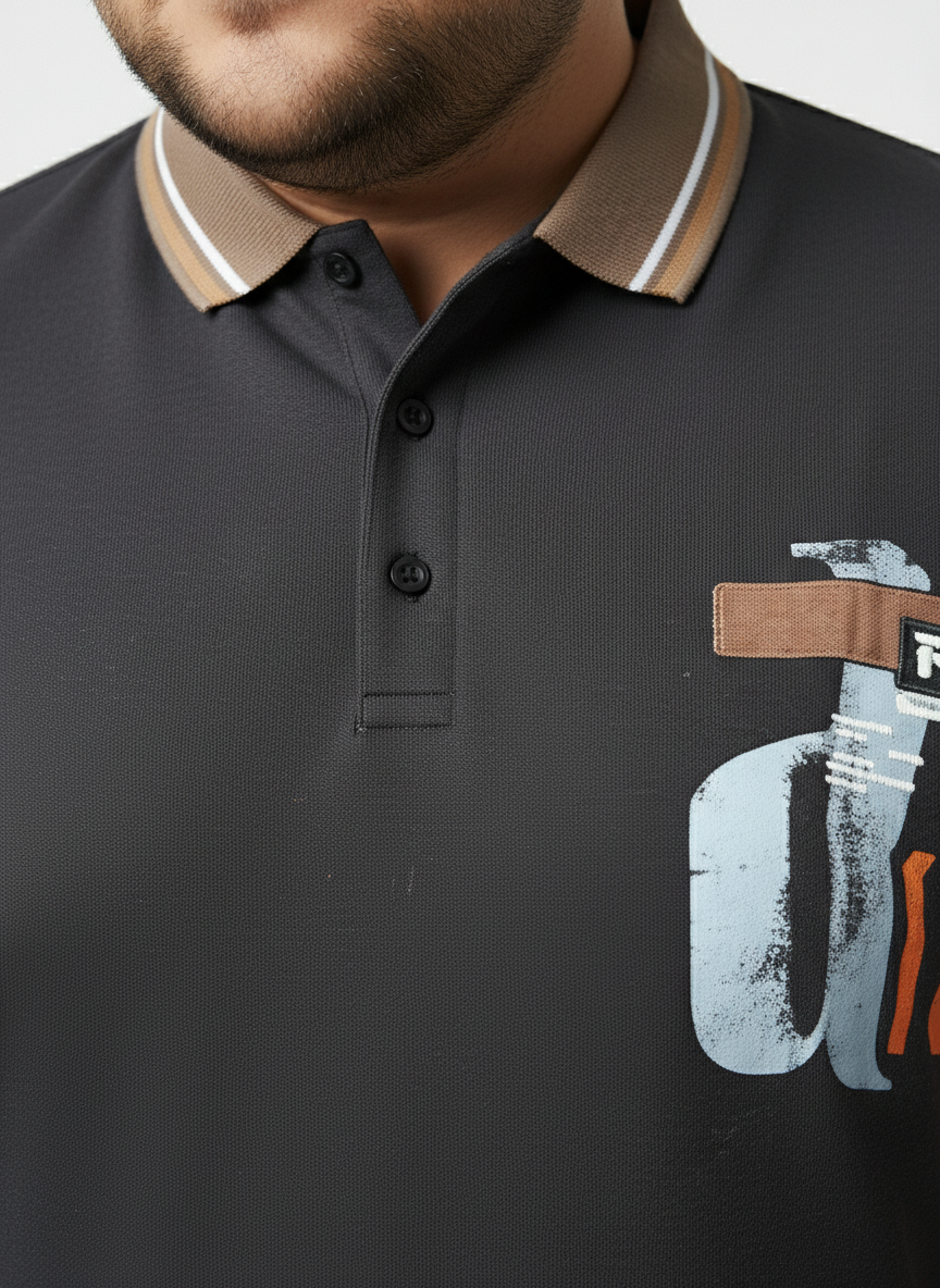 This plus size polo t-shirt for men offers a perfect blend of comfort, style, and confidence. Designed with a modern fit, it features a soft and breathable fabric that keeps you cool and comfortable all day long. The contrast collar and sleeve detailing add a touch of sophistication, while the stylish chest print brings a trendy and youthful vibe to your casual wardrobe. Ideal for both everyday wear and casual outings, this polo t-shirt pairs easily with jeans, chinos, or shorts for a polished yet relaxed look. Its durable stitching and premium-quality fabric ensure long-lasting wear, making it a must-have addition to your collection. Whether you’re heading out for a weekend brunch or a casual meeting, this plus size polo t-shirt keeps you looking effortlessly smart and confident.